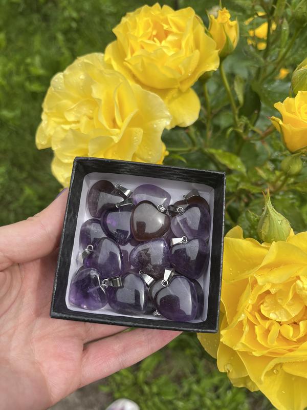 Кулон сердечко натуральний аметист на шкіряному ланцюжку