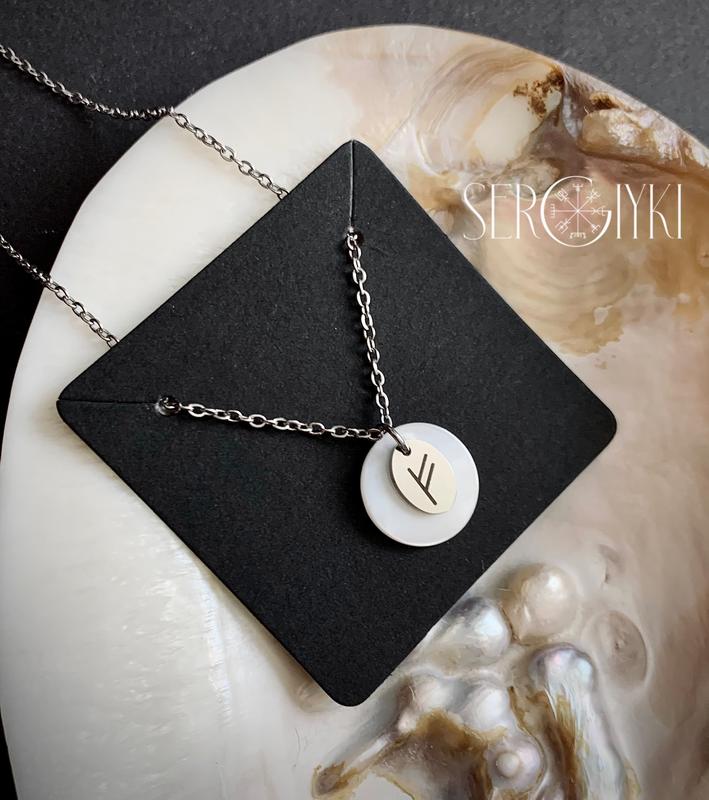 Кулон підвіс талісман з руною феху з перламутром (ресурси, достаток, фін успіх, ріст карʼє...