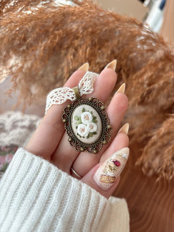 Кулон з вишивкою У вінтажному стилі У комплект входить кріплення : стрічка оксамитова , ланцюжок або шнурочок