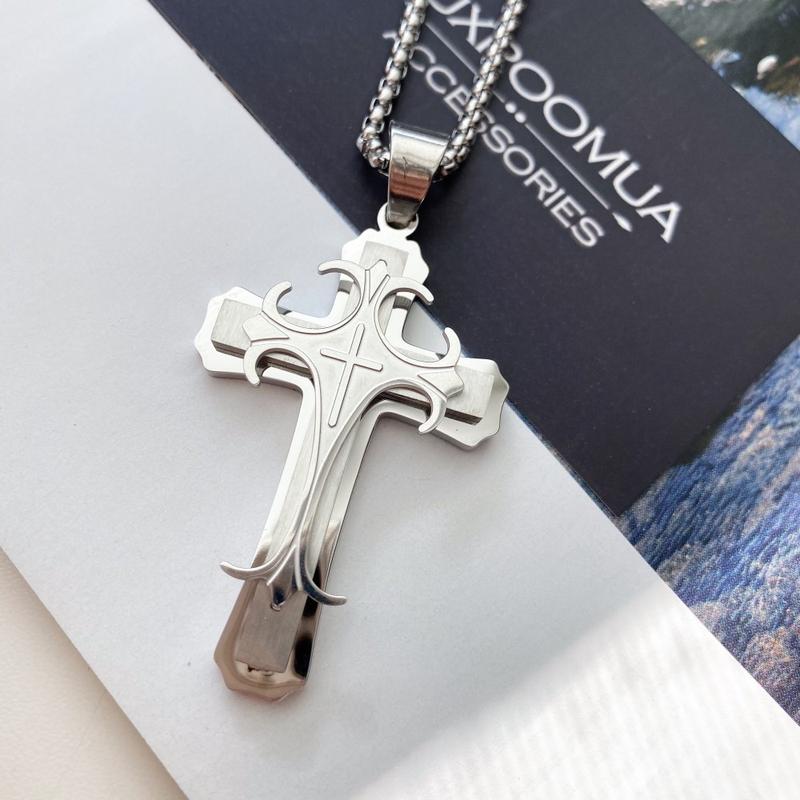 Br s чоловіча срібна підвіска, сталевий ланцюжок на шию з хрестом