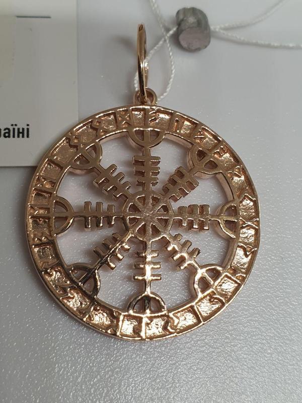 Кулон, амулет срібна 925 проба підвіска шолом жаху в колі рун позолота