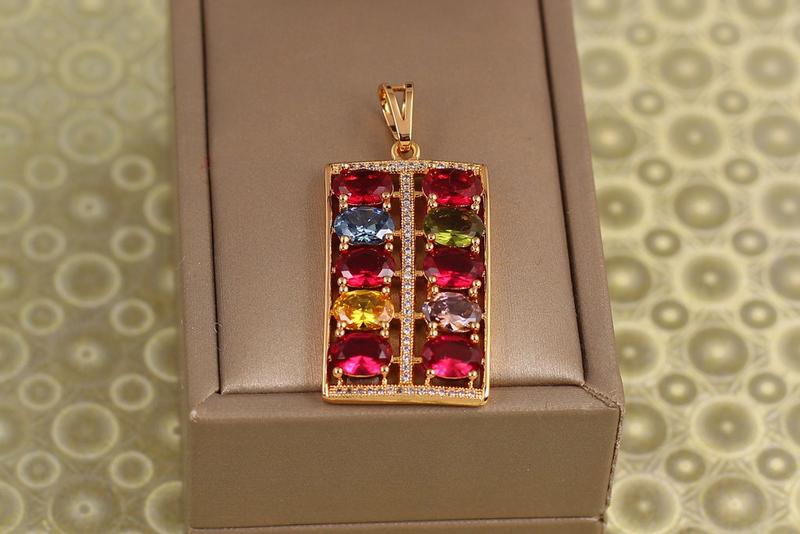 Кулон Xuping Jewelry прямокутник кольорові камені в два ряди золотистий діаметр каменю 3,2 см вага 7,91 гр