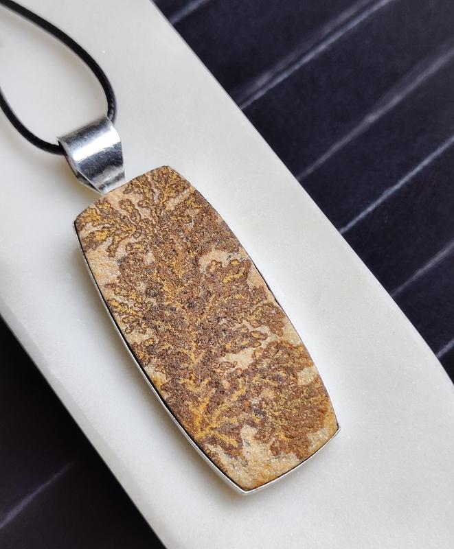Пропонуємо Вам придбати підвісок з дендриту. Індія. Розмір каменю : 53*24 мм. Довжина(загальна) : 68 мм. Метал: індійське срібло. (сплав срібла,міді та латуні,покрите сріблом 925 пр.)