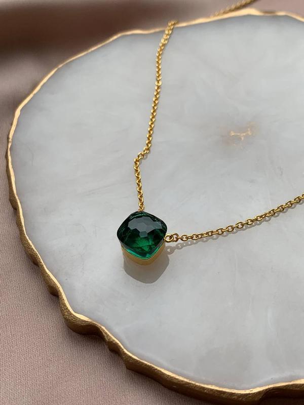 Подвеска помеллато посеребрённые с квадратным камнем зелёного цвета