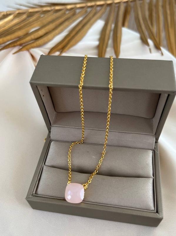 Підвіска помелато позолота 18 к/ланцюжок із рожевим каменем
