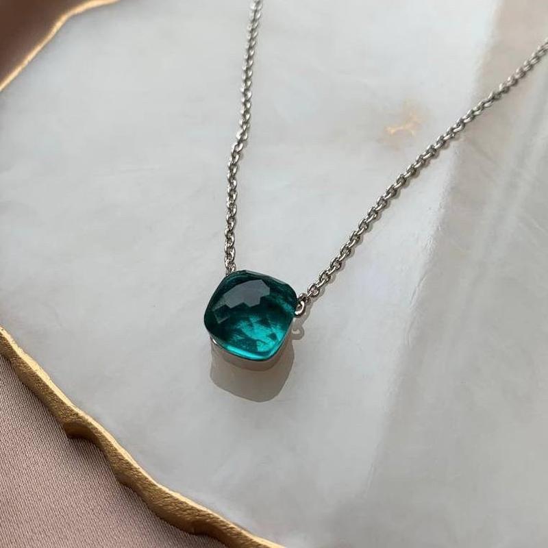 Підвіска помеллато посрібленя з квадратним каменем зеленого кольору
