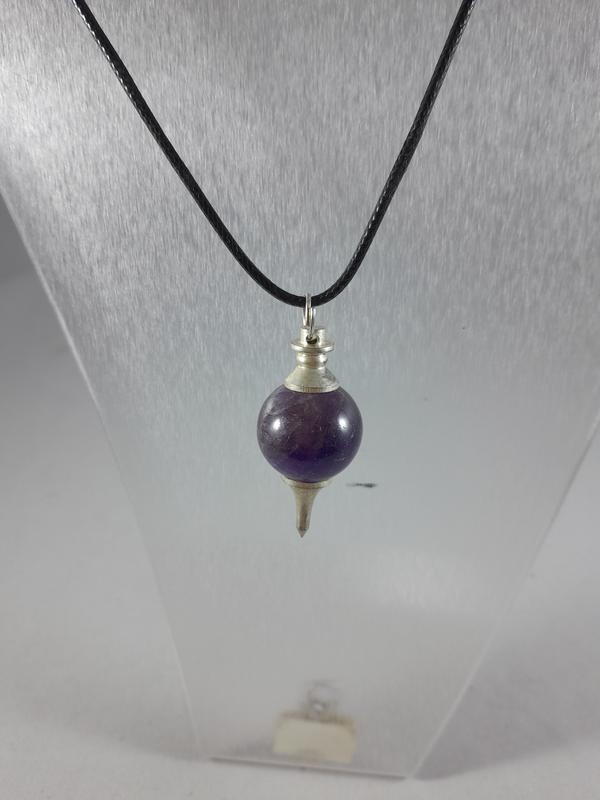 Яка ж підвісочка файна. Файна тому, що натуральна. Бо для прикраси використан натуральний непрозорий темно-фіолетовий аметист. Доповняє підвіску металева частина з біжутерного сплаву. А самоцвіти - вони неповторні, природні. Тому в будь якому разі ні в кого такої не буде. Довжина підвіски з металевою частиною 3.8см. Довжина шнура 44см. Можна використовувати як маятник