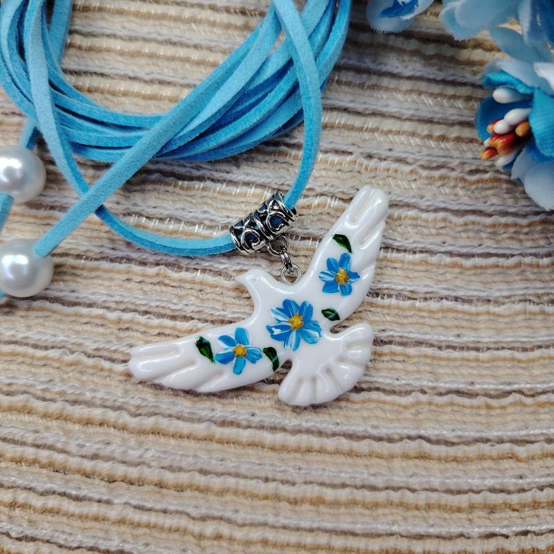 Ручная роспись, кулон на шнуре. Полимерная глина