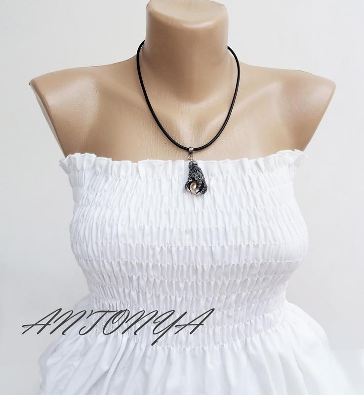 Кулон Кіготь дракона виконаний з запеченої полімерної глини Cernit. Незвичайний кулон у вигляді мініатюрної лапи дракона з перлиною, Довжина шнура 45 см, довжина підвіски з перлиною близько 4 см Кулон -Оригінальний і стильний подарунок коханій дівчині, дружині, подрузі, сестрі на день народження, річницю весілля, на ювілей, на 8 березня. Незвичайний подарунок, дизайнерське оздоблення, ексклюзивний подарунок, авторську прикрасу.
