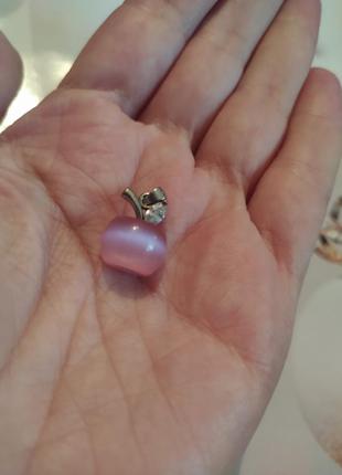 Кулончик яблочко кошачий глаз, посеребрение