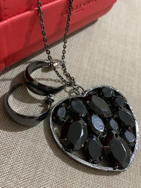 Длина цепь 44 см, кулон 5,5 на 5 см. Серьги диаметр 2,5 см, ширина 1 см.
