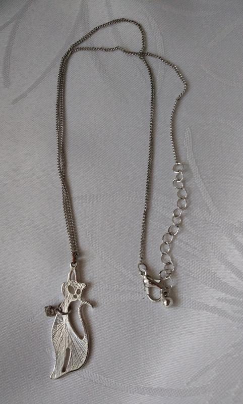 стильна підвіска котик , колір під срібло, розмір кулона 4 см, цепочки 42 см + 5 см