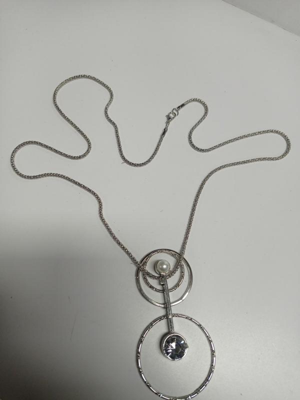 підвіска довга..сріблястий метал..перлинки..кільця..красива.