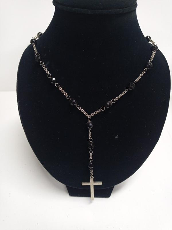 підвіска хрестик..ланцюжок з чорними гранчастими бусинами..регулюється.