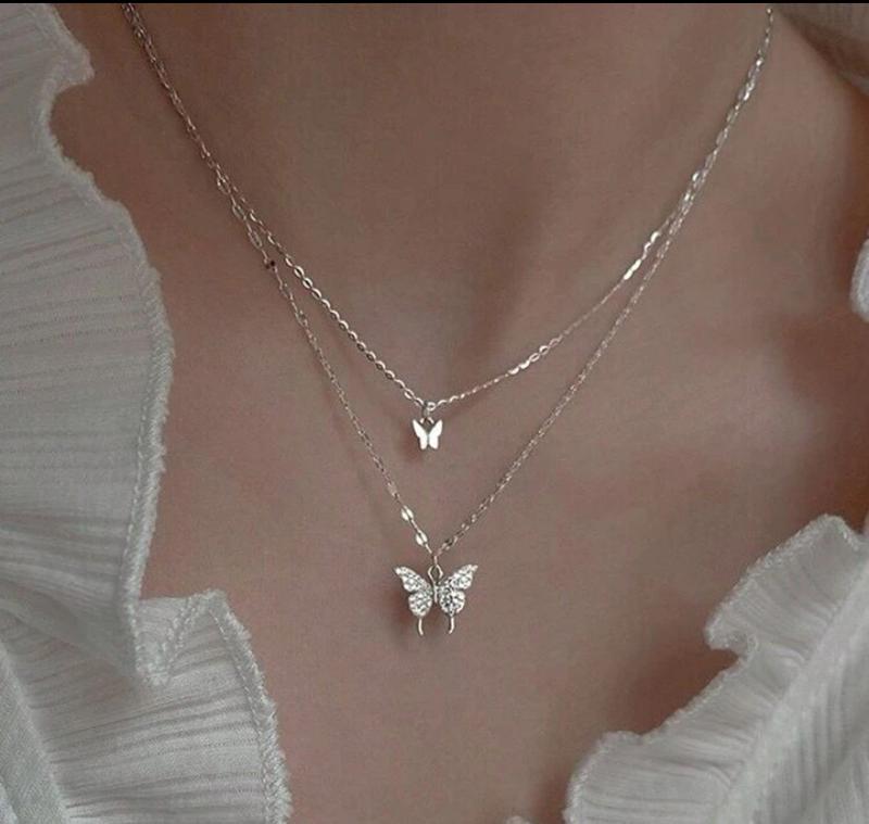 Підвіска подвійна метелик Довжина: 46 + 5 см Матеріал: цинковий сплав Колір камінця: білий Відправка (Укр та Нова пошта). Пишіть в особисті повідомлення за додатковою інформацією!