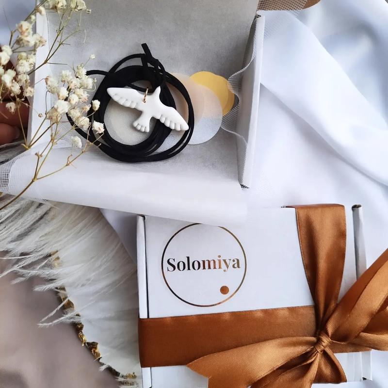 🤍Підвіска "Горлиця"🕊 _______________________ Матеріал підвіски: полімерна глина - міцна, водостійка. Замшевий шнур: 1м.20см. Розмір птаха: довжина розмах крил - 5см. Вся висота 3см. Товщина: 3мм. Кольори шнурів на вибір: білий, чорний, чорний шкіряний, червоний, бордовий. _______________________ 👌Примітка* Термін якості безпосередньо залежить від умов носіння та зберігання прикрас. Тому, будь ласка уникайте контакту з водою, жирними поверхнями, парфумами та лаком для волосся. Знімайте перед сном. ________________________________ 💟Подарункове фірмове пакування. ✉️Наложений платіж по предоплаті 200грн 📮Відправка Новою поштою, Укрпоштою #Соломія #Сережки #18к #золото #квадрат #чокер #прикраси #краса #перлини #кришталь #solomiya #біжутерія #круглі_сережки