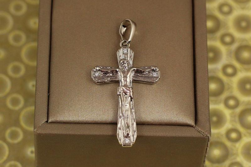 Хрестик xuping jewelry з розп"яттям і фіанітом по краям 3 см сріблястий