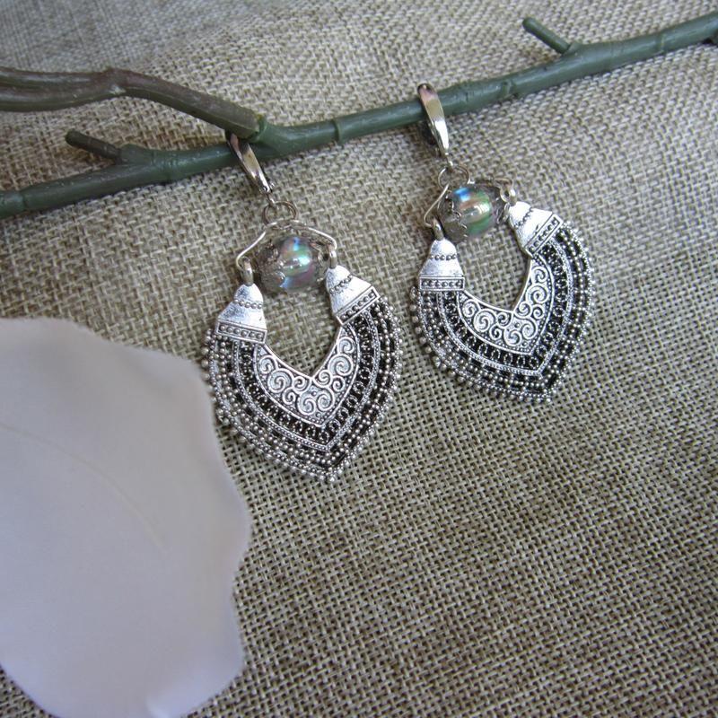 В прикрасфі використано матеріал: опалитове скло , метал. Довжина 6 см, вага пари 20 г Додаткові характеристики: Колір: Білий Колір: Сірий Матеріал: Намистини