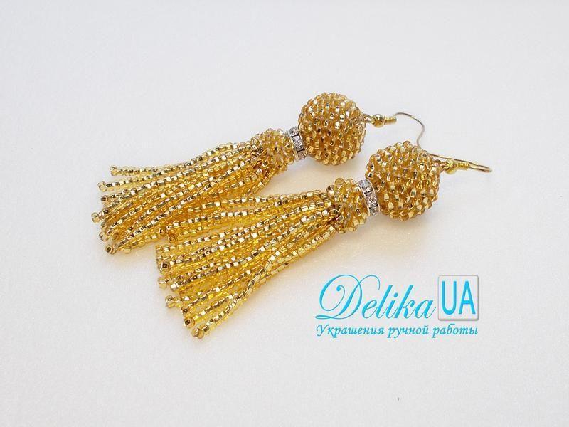 Ексклюзивні сережки-китиці "Delika". Матеріали: бісер Чехія,фурнітура під золото. Довжина 7.5 см, діаметр кульки 1,5 см.. Зроблю під замовлення в будь-якому кольорі. Термін виготовлення 3-4 дні.