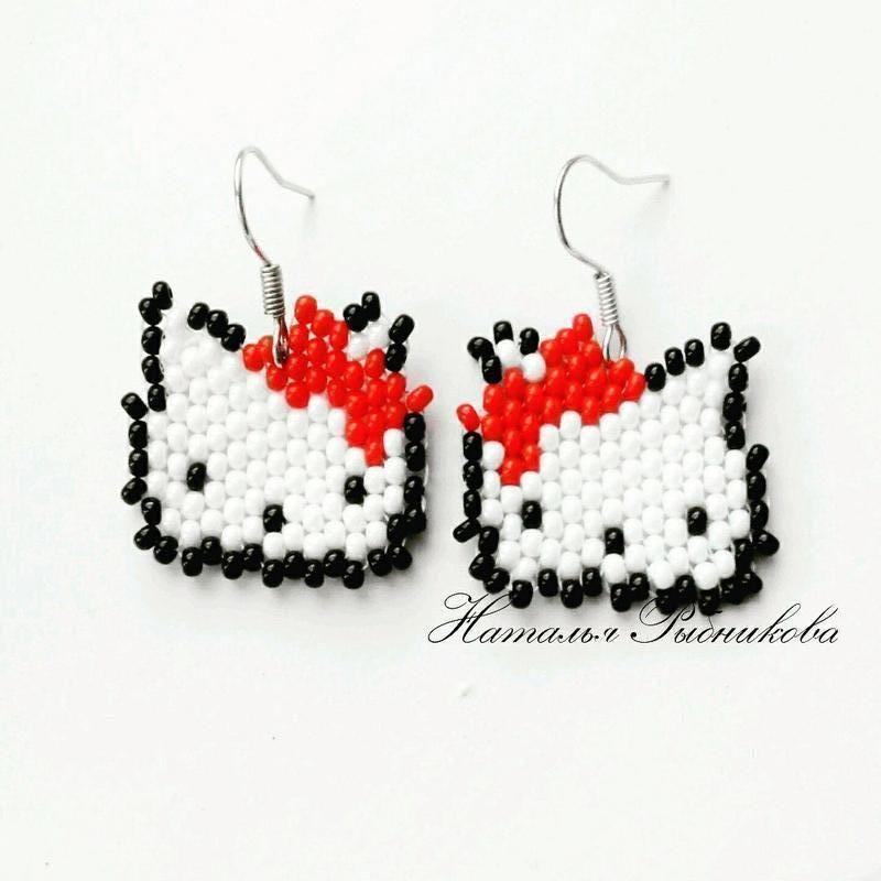 Серьги из бисера китти детские серьги купить подарок для ребенка белые серьги из мультика...