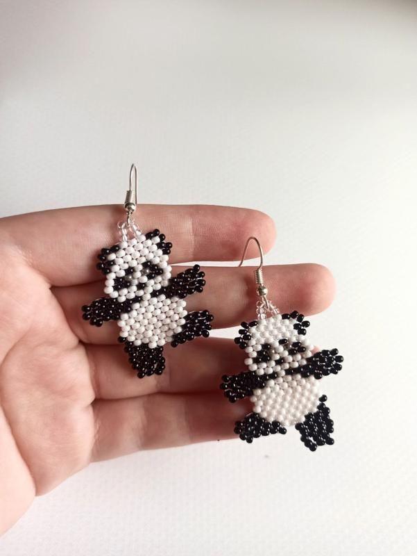 Сережки панда з бісеру, ексклюзивні красиві сережки на подарунок