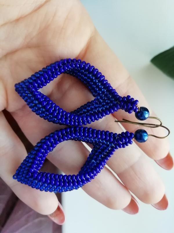 Серьги Листья из чешского бисера. Ручной работы Размер: ширина 2.5см, длина 5 см (без швенз). Возможен повтор в других цветах. Изготовление в течение 2 - 3 дней. Й Дополнительные характеристики: Цвет : Желтый Цвет : Синий Материал : Бисер Материал : Нитки Товар под заказ