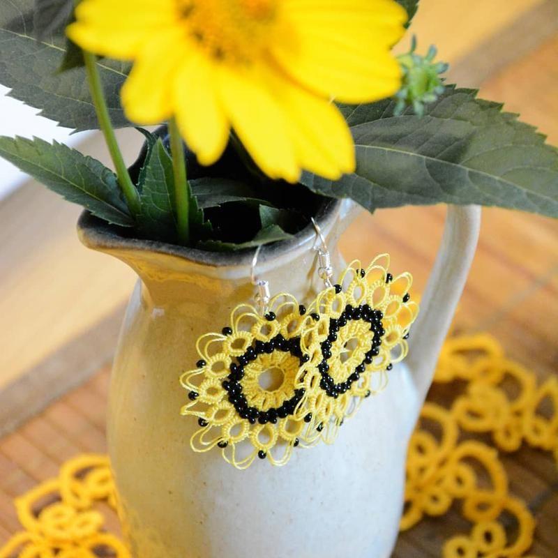 Шматочок сонця Сережки-мандали - так їх називаю я. Просто круглі, просто жовті, просто літо кожного дня. Сережки тільки під замовлення, бо цвітуть за 10000 км Додаткові характеристики: Колір: Жовтий Колір: Чорний Матеріал: Бісер Матеріал: Нитки Товар виготовляється на замовлення