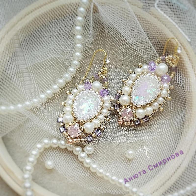 Ошатні, суперлегкі сережки Снігова ніжність , Абрикосова ніжність, Гірська лаванда Приголомшливо ніжні, з опаловим сяйвом сережки зроблять вам настрій на цілий день )) 🥰 В роботі акриловий кабошон, японський бісер TOHO і MIYKI, кришталеві намистини ронделі і перлинні, виворіт екокожа 🧡 Додаткові характеристики: Камені / вставки: Стрази Матеріал: Бісер Матеріал: Намистини Матеріал: Металева фурнітура Товар виготовляється на замовлення