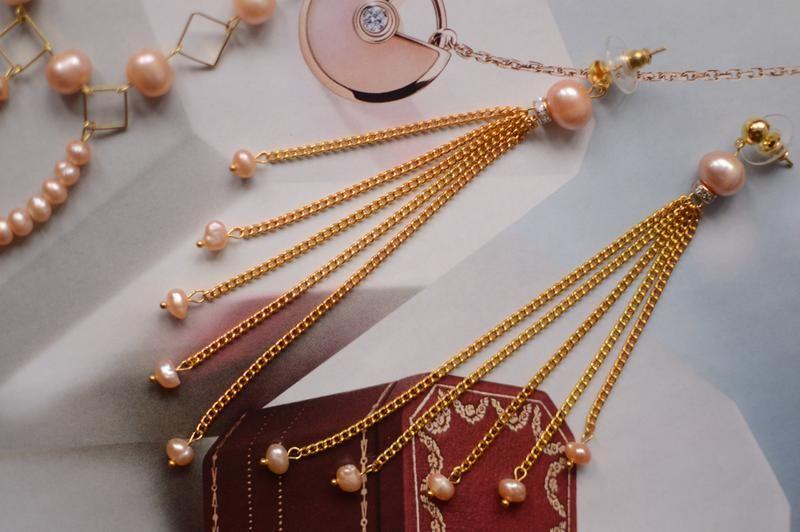 Серьги - цепочки с розовым жемчугом "жозефина"