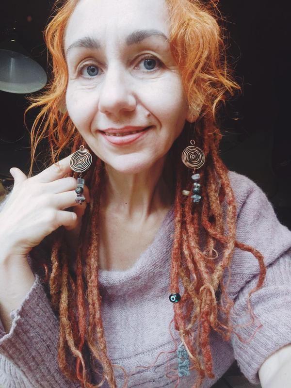 мідь з натуральним камінням.. Форма спіралі - символізує внутрішню подорож, бо якщо ми не пізнаємо себе, то не можемо сподіватися на пізнання навколишнього світу ♡ Додаткові характеристики: Матеріал: Повсть Матеріал: Мідь Матеріал: Дріт Матеріал: Вовна Товар виготовляється на замовлення