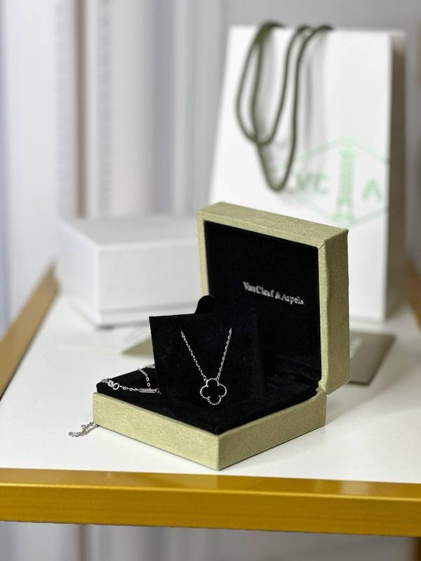 Підвіска цепочка vca van cleef із чорним оніксом Розмір квітки 1,5 см Довжина цепочки 45 см Срібло в позолоті , проба AU750 Серійний номер Преміум упаковка: кофр, коробка , шкатулка , пакет , сертифікат