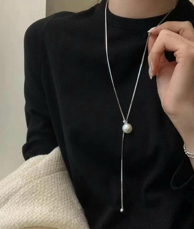Медсталь подвеска галстук с жемчужинкой длинная подвеска длинная цепочка медицинский сплав...