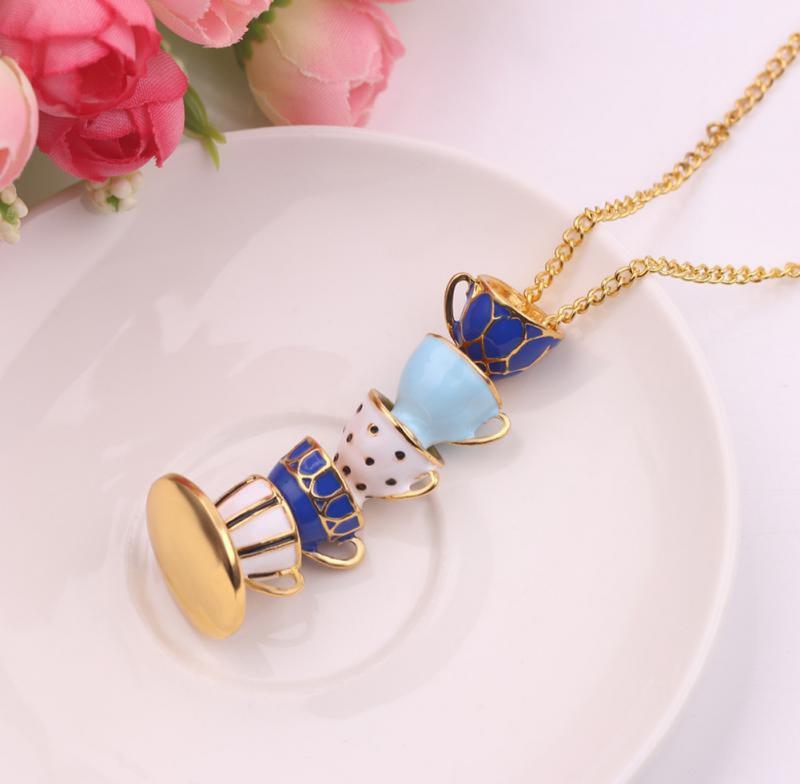 Забавный кулон-чашечки, вдохновленный историей кэрроловской Алисы, внесет долю иронии даже самым строгим образом. К кулону можно подобрать серьги-пуссеты из этой же серии.