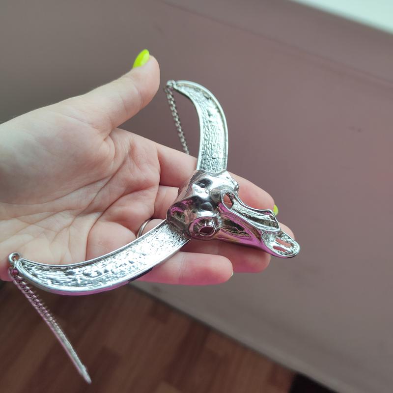 Прикраса сріблястого кольору з черепом. Нова, купувала давно.