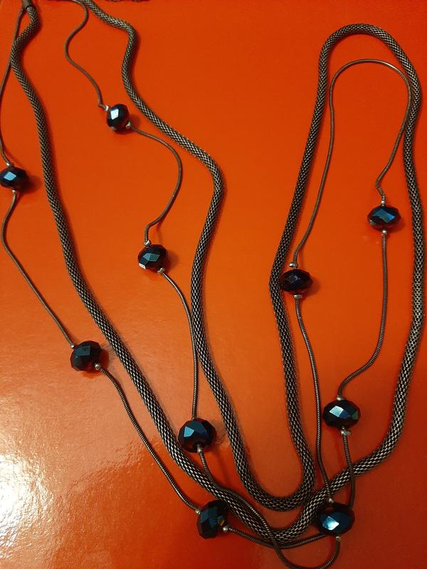 двойная подвеска длиной 110 см диаметром 4 и 10мм 10 граненых камней сферической формы цвета сапфира