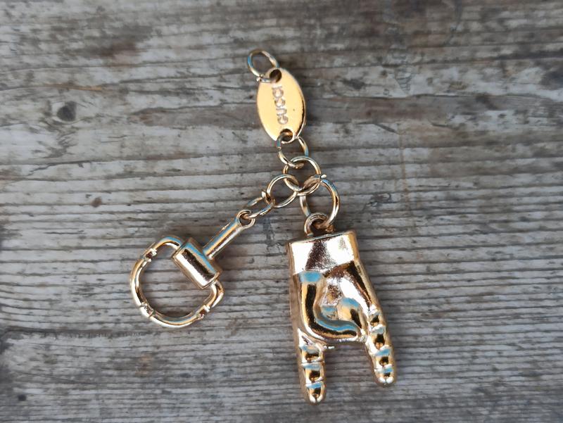 Золотого цвета подвеска с козой хэви металл и наручники и овальная подвеска со словом Gucci размер 3 см