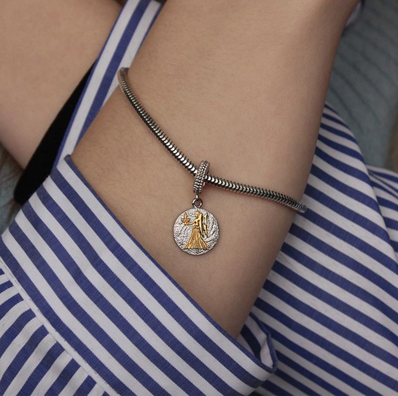Срібний шарм Діва з круглою підвіскою і кольоровим родіюванням в ідеальному стані срібло 925 відправка укр або нова пошта