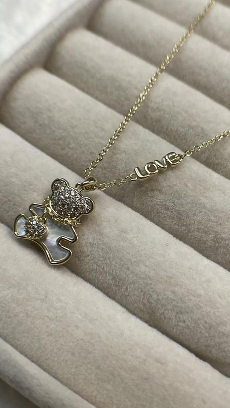 Підвіска з медичної сталі з перламутром та цирконієм Довжина 45+5 см подовжувач
