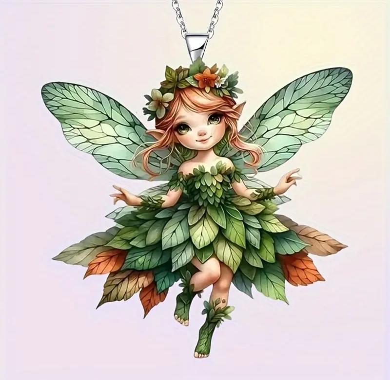 Очаровуюча Лісова Фея Принцеса Підвіска з Квітковою Короною - Яскравий Зелений Акриловий Ельфійський Талісман, Ідеальний Подарунок для Дочок та Внучок, Ідеально для Хелловіну, Дня Народження.