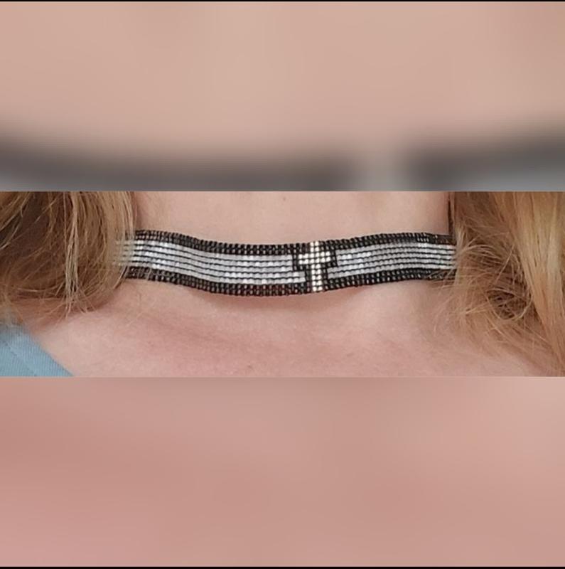 Чокер у мінімалістичному стилі з вишуканим хрестиком з бісеру Miyuki delica виконано у техніці ручного ткацтва.