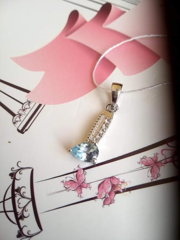 Новая серебряная подвеска с натуральным швейцарским голубым топазом и белыми топазами Вес, г: 1.51 Размер 25*9 мм Камень: натуральный щурейцарский голубой топаз 0.95 см, белые топазы Материал: серебро 925 пробы, покрытие родием Изделие прошло геммологический контроль и было апробировано в Пробирной Палате Украины Пломба, бирка