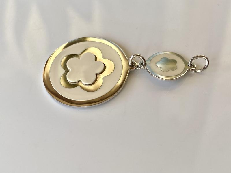 Стильний трендовий срібний підвіс з ювелiрною емаллю. Срiбло 925 проби вкрите родiєм 999 проби. Стан - дуже хороший. Більш детальна інформація про вагу та розмір ювелірного виробу містяться на самих фото. Ланцюжок на фото не продається. В інших моїх оголошеннях є ще сережки до цього підвісу. Фото знятo при денному освітленні, без спалаху та сторонніх не програм. Маю ще багато цікавих прикрас). Всі мої речі та аксесуари якісні, покупкою залишитесь задоволені) За необхідності зроблю Вам додаткові фото та з радістю відповім на всi Ваші запитання)