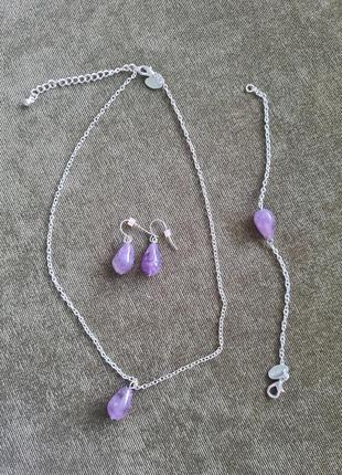 продам терміново!! новий!!! ланцюжок з кулоном +сережки + браслет набір з каменем аметист