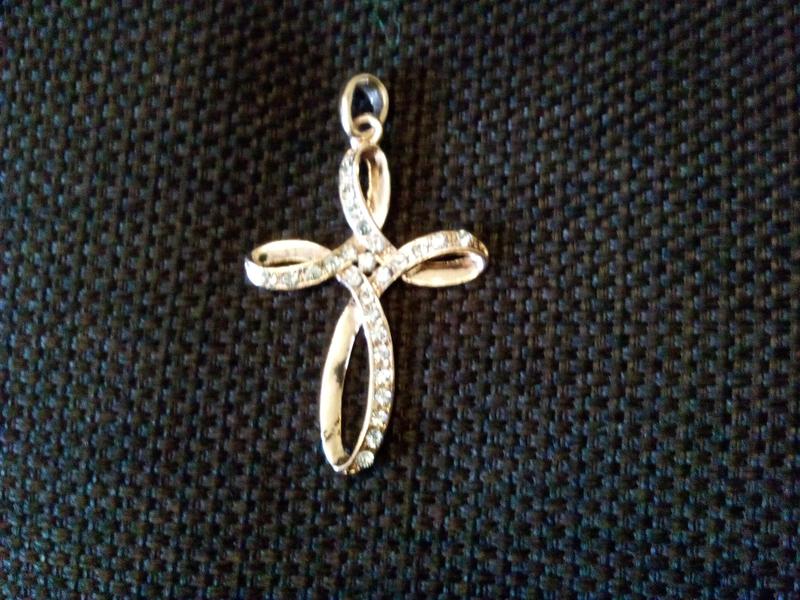 Дуже гарний хрестик , з кресталами Сваровські . Висота без вушка 5,5 см з вушком 6,5 см . Покритий позолотою , не чорніє . Бижутерный сплав .