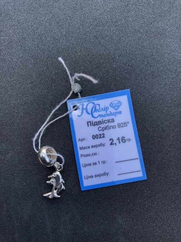 Підвіска Дельфіни Маса виробу 2,16 гр Довжина виробу 2,4 см Ширина виробу 0,7 см