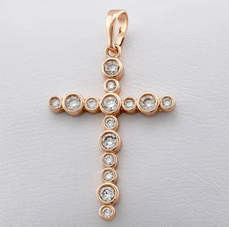 💫 Хрестик Xuping 🔻Арт: 70331 📏 розмір 40х25 мм 💠Медичне золото позолота РВ і білі фіаніти ⚖️Вага: 2,7 грама