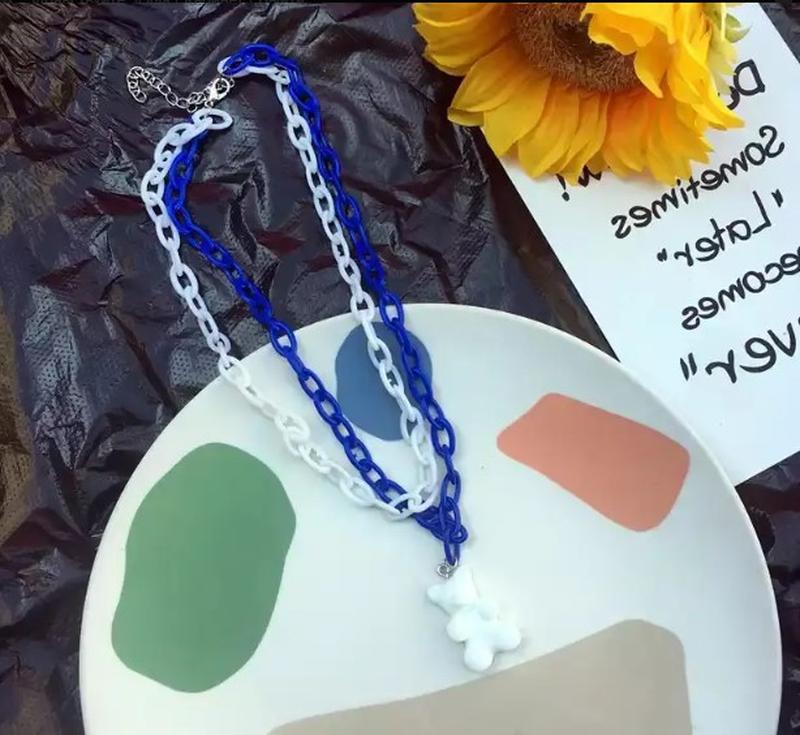 Кулон з мишком. Колір: білий + синій. Розмір: довжина 40см. Матеріал: смола, пластик.