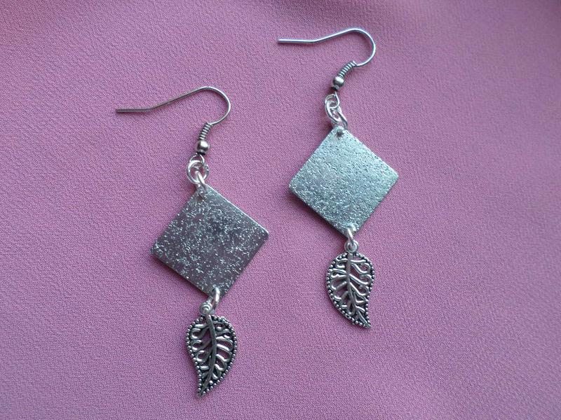 Сережки, метал. Довжина загальна - 5 див. ромб - 1,6 див. листочок - 1,9 див. Прикраси та годинник на сайті: http://bizhu-s.com/