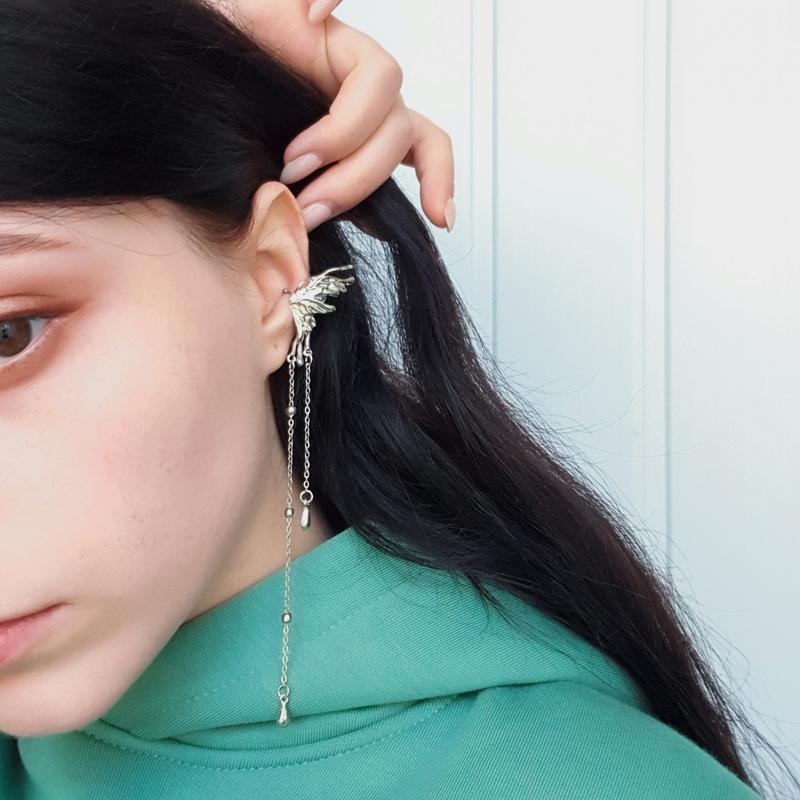 Ельфійська кафа обманка на вушко, металева кліпса крило з ланцюжками, панк, естетика, fair...