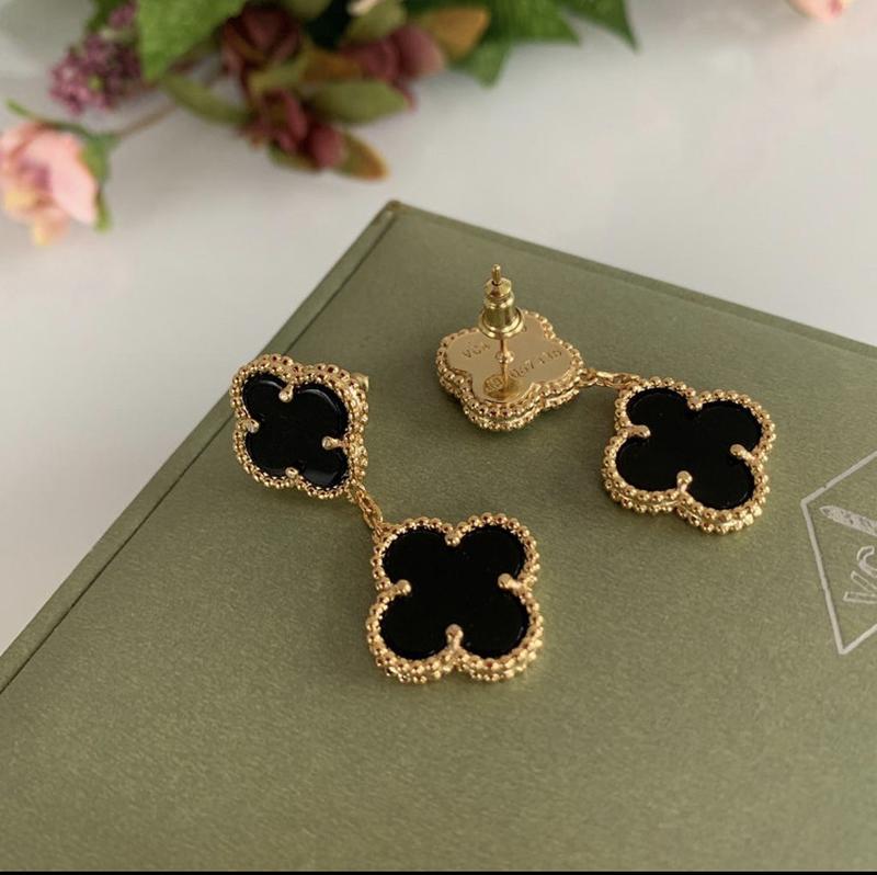 Серьги чёрные vancleef ванклиф серебро два цветочка